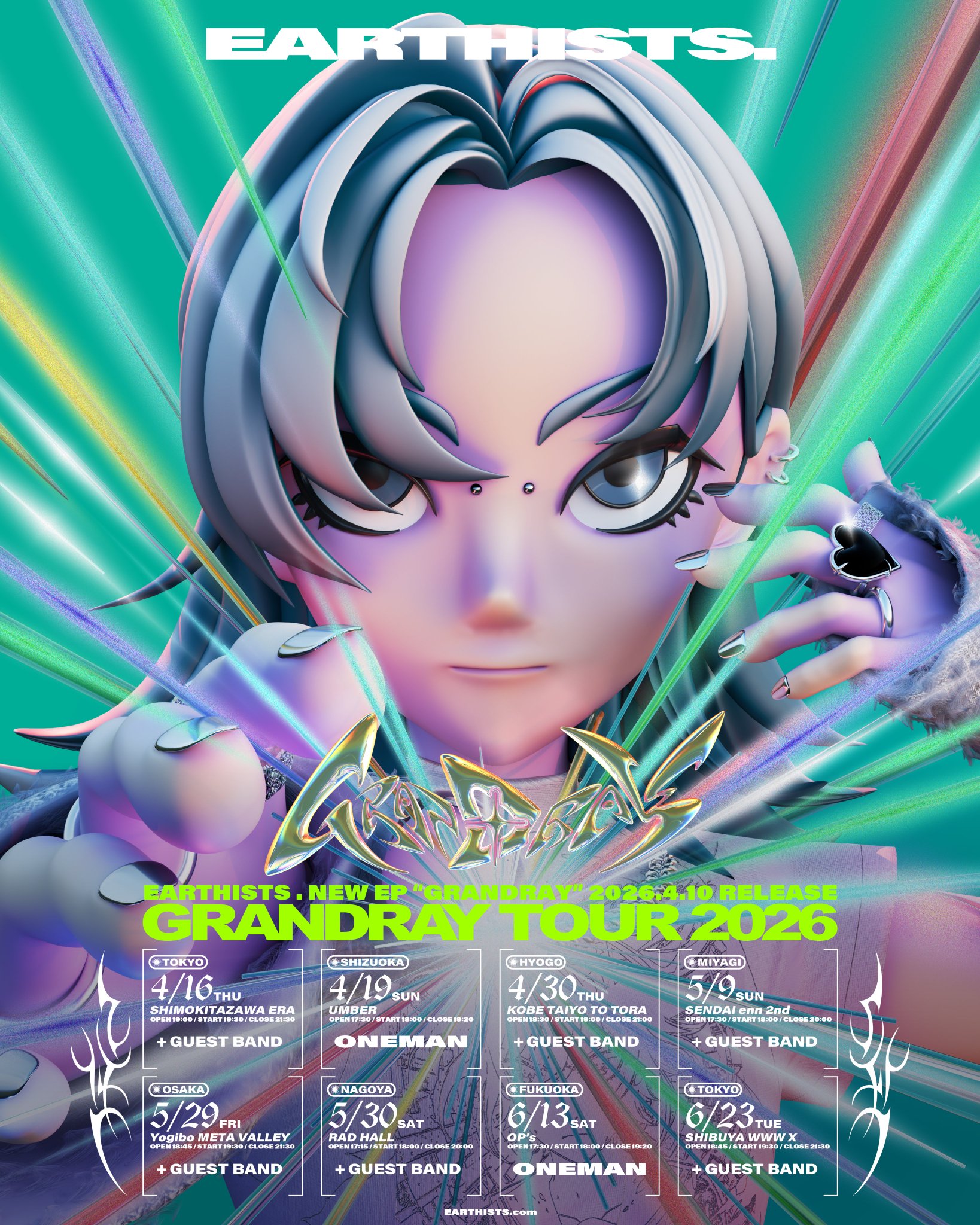 Vo.Yui(@Yuithists)Gt/Vo.Yuto(@yutothists2) Ba.Shugo(@133sf)Dr.Yuya(@DsRiUcMkS) 出演依頼等はこちらまで ➡︎ we.are.earthist@gmail.com 2015 年結成。東京を中心に活動するメタルコアバンド「Earthists.」。Djent / メタルコアサウンドを基調に、ジャズや POPS の要素も加えつつ、メンバー4 人が全く違う音楽のルーツを持っているため様々な楽曲アプローチをしている。結成 2 年でアメリカ の名門メタルレーベル TRAGIC HERO RECORDS と契約し同年に 1st Full Album 「DREAMSCAPE」をリリース。その後、国内ツアーを皮切りにアジアツアーを敢行。2018 年以降は、自身のリリースパーティーやツアーファイナルで海外バンドをゲストとして日本に招聘。6月29日から2週間に渡るヘッドライナーのヨーロッパツアーを敢行し、イタリアで行われるメタルフェス”Dissonance Festival”に出演した。2019年10月に自主レーベルDIGITALCULT RECORDSを設立。以降3枚のデジタルシングルをリリース。2020年6月27日に、GARRET Udagawaにてガイドラインに則り有観客にてワンマンショーを行う。その際、ステージ前面に設置した飛沫防止シートにVJを投影し、ホログラムで中国や韓国のゲストボーカルを登場させるバーチャルフィーチャリングを行い話題となった。11月にはPALEDUSK、GRAUPEL、PROMPTSと東名阪ツアーを敢行。全日即完となった。また、2021年2月にはclubhouse内にて日本最速で配信ライブを行い、200人以上が視聴をした。
