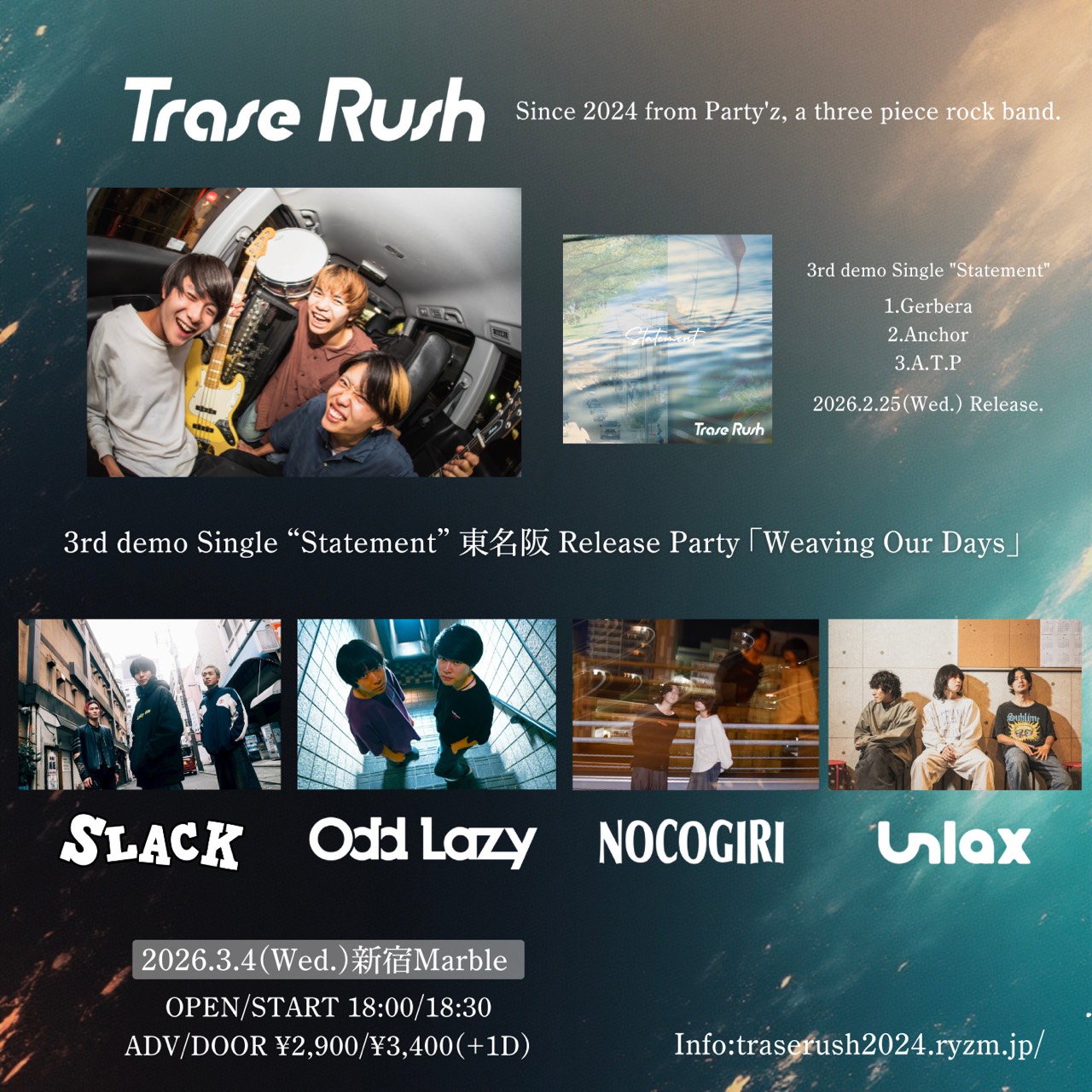Trase Rush 3rd demo Single”Statement”東名阪Release Pary「Weaving Our Days」