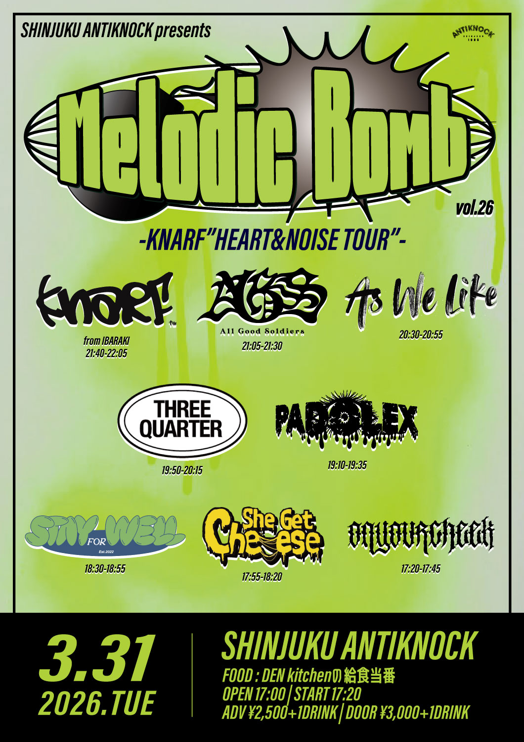 shinjuku ANTIKNOCK presents 【Melodic Bomb vol.26】 -KNARF "HEART&NOISE TOUR"-