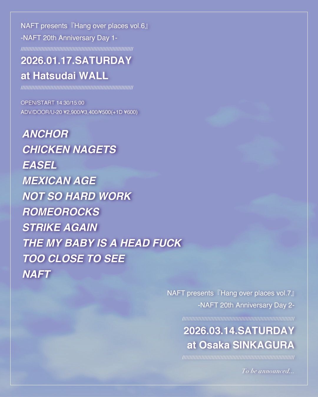 NAFT pre.『Hang over places vol.6』 -NAFT 20th Anniversary Day 1-
