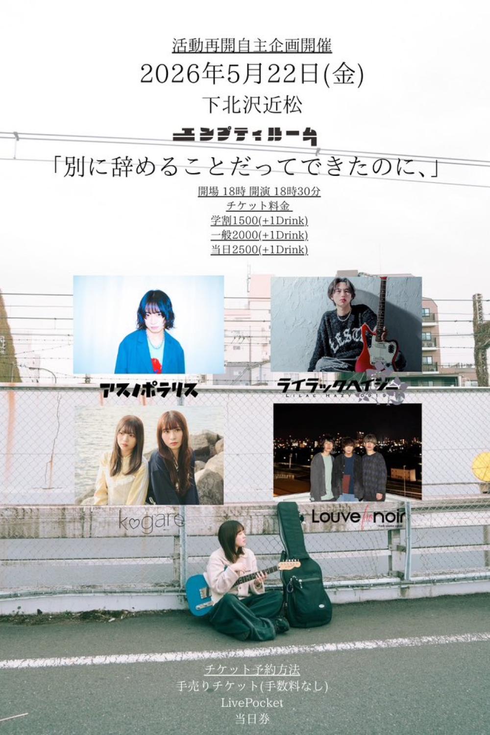 広島で活動中の4ピースロックバンド。 Vo. 落岩 Gt.きょーへい Ba. タカト Dr. かなめ