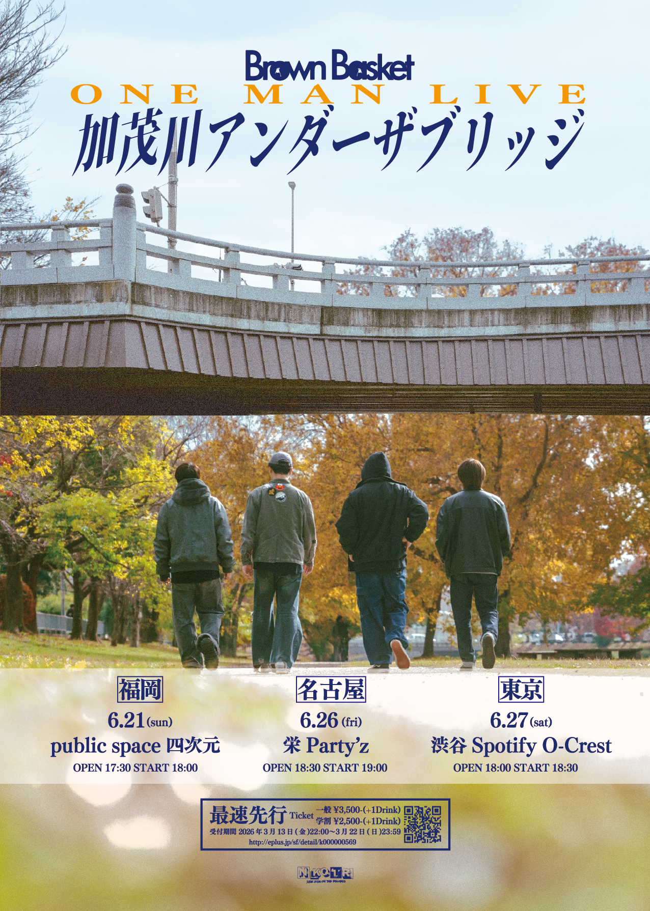 京都発4人組ロックバンド 2016年7月結成。 Vocal/Guitar 岸本 和憲 Guitar omochi trip Bass 北川 陸 Drum スズキセイヤ 2022年8月14日 1st E.P. 『PINEFIELD』リリース ぶっ滾るツアー2022 完走! 2023年4月12日 Digital Single『ROLLING』リリース Release Party 響命心 完走! チケットお取置き、イベントへのお誘いはTwitter又はHPからお願いします! Mail: brownbasket.official@gmail.com