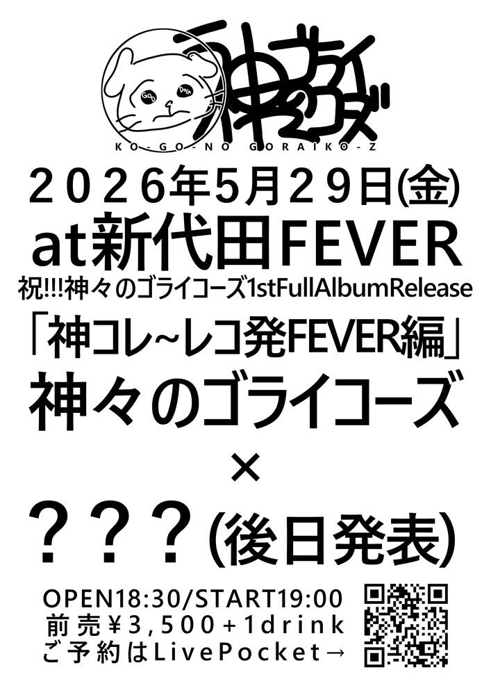 Dr&Vo.グレート橋本、Gt.なかねパンサー、Ba.ガッツ a.k.a.こまけんの3人。 新代田Feverを拠点に破壊と再生を繰り返し、2016年のドラム脱退を機にドラムボーカルの3ピース編成に。 これまでに1st mini album「ピクニカル」、2nd mini album「謳歌」、突然少年とのスプリットシングル「プリスクール」をリリース。 2019年5月にカナダツアー「NextMusicFromTokyo vol.14」への参加と、Gtなかねパンサーの脱退を控え、3/6になかねパンサーとの最後の音源「メンタルバルスEP」をリリース。 神々のゴライコーズの怠惰と欲望は、ソリッドに加速してゆく。