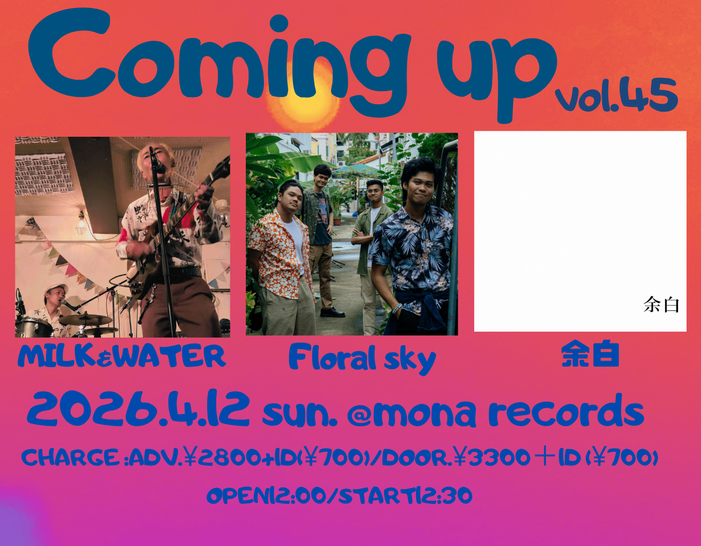 MILK&WATER vo. gu. :松原浩三 gu. cho:bikke ba. cho:884 dr. cho:J.P. 1992年、福岡にて結成。東京在住。 これまで6本のカセット、5枚のCD-R、4枚のCDを制作。 榊英雄監督作品「軍団刑事っ!」「終着駅の次の駅」のエンディングテーマ、劇中歌を提供。 オープニングアクトとして、榊いずみ、Theピーズ、怒髪天、The 2・3’sとの共演を果たす。 ボーカル・ギターの松原は、3年間、怒髪天、増子氏の番組、TOKYO FM系列「DNA ロックの殿堂」のポッドキャスト版のアシスタントパーソナリティーとして出演。 現在、怒髪天、清水氏とのユニット「グリーンハイツ」としても活動中。