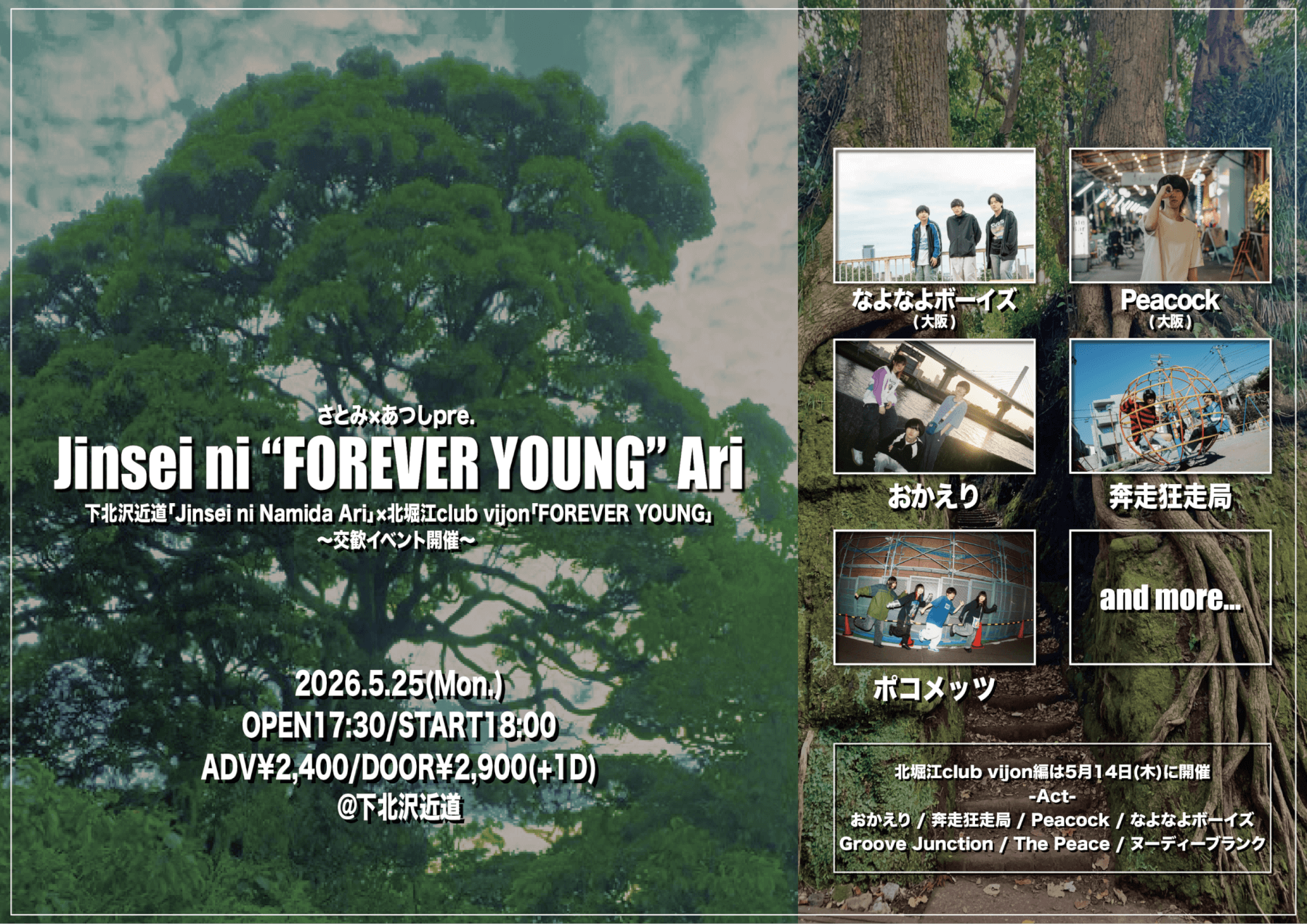 さとみ×あつしpre 『Jinsei ni FOREVER YOUNG Ari』東京編 〜下北沢近道「Jinsei ni Namida Ari」と北堀江club vijon「FOREVER YOUNG」による交歓イベント開催〜