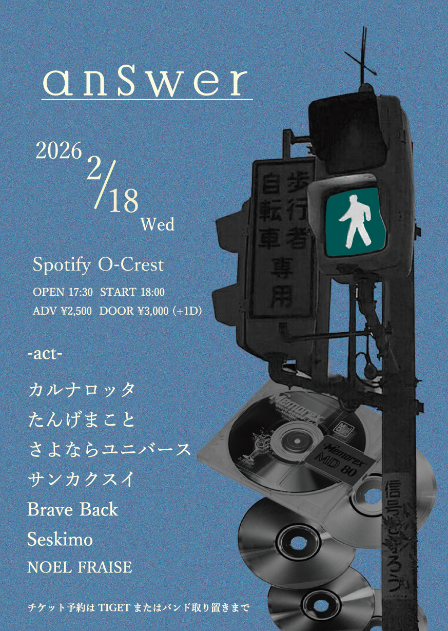 【開場開演時間変更】 カルナロッタ / たんげまこと / さよならユニバース / サンカクスイ / Brave Back / Seskimo / NOEL FRAISE 「answer」