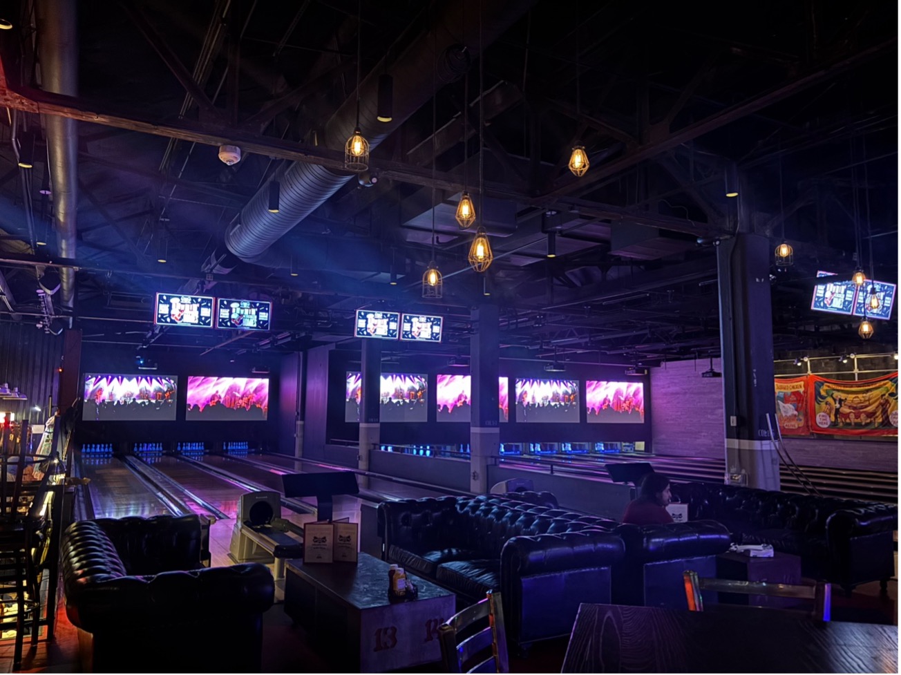14:00。工程通り会場のBrooklyn Bowlにin。きたきたきた、またボウリング場。今回はステージ横にボーリングレーンがあり面白い光景が広がっていた。