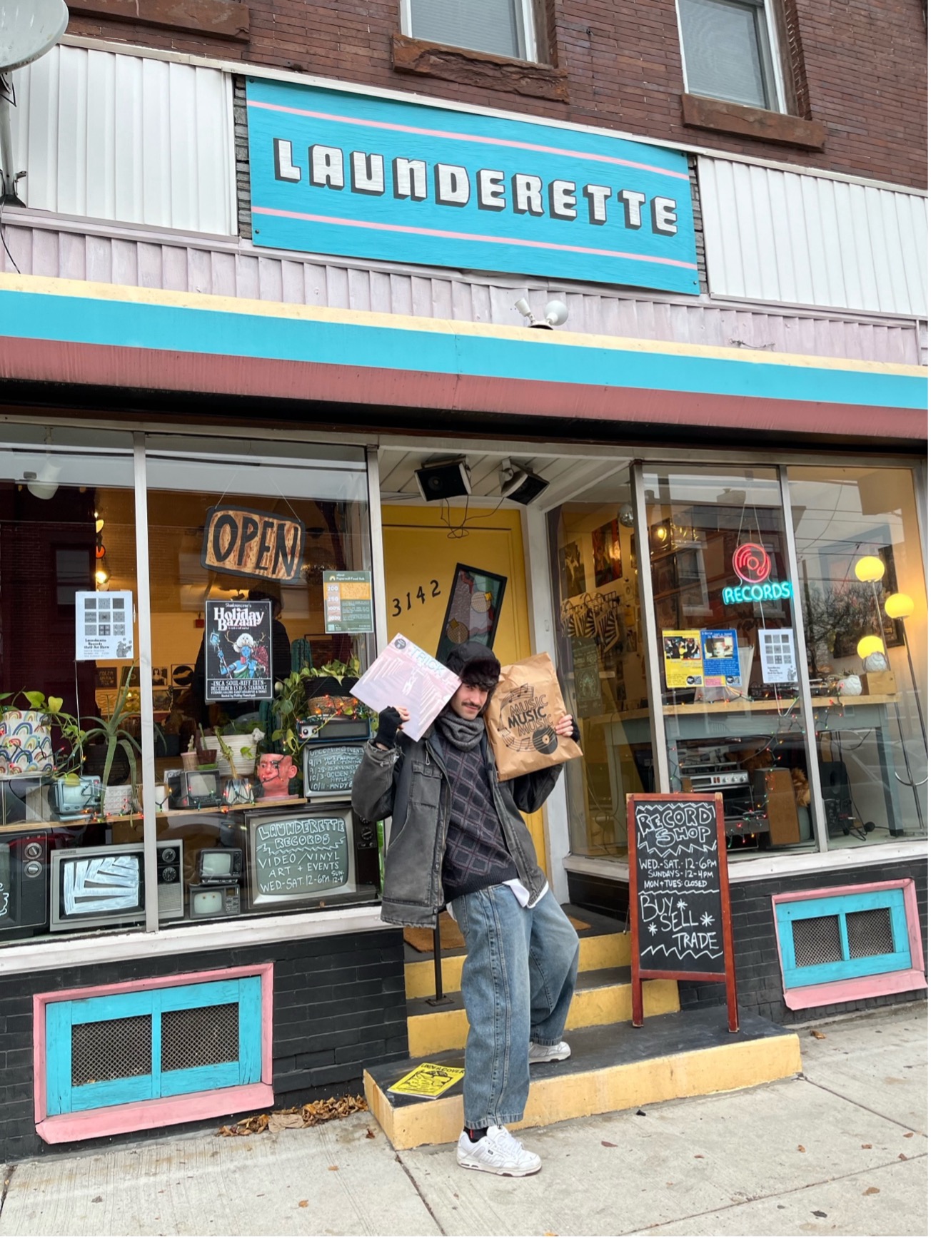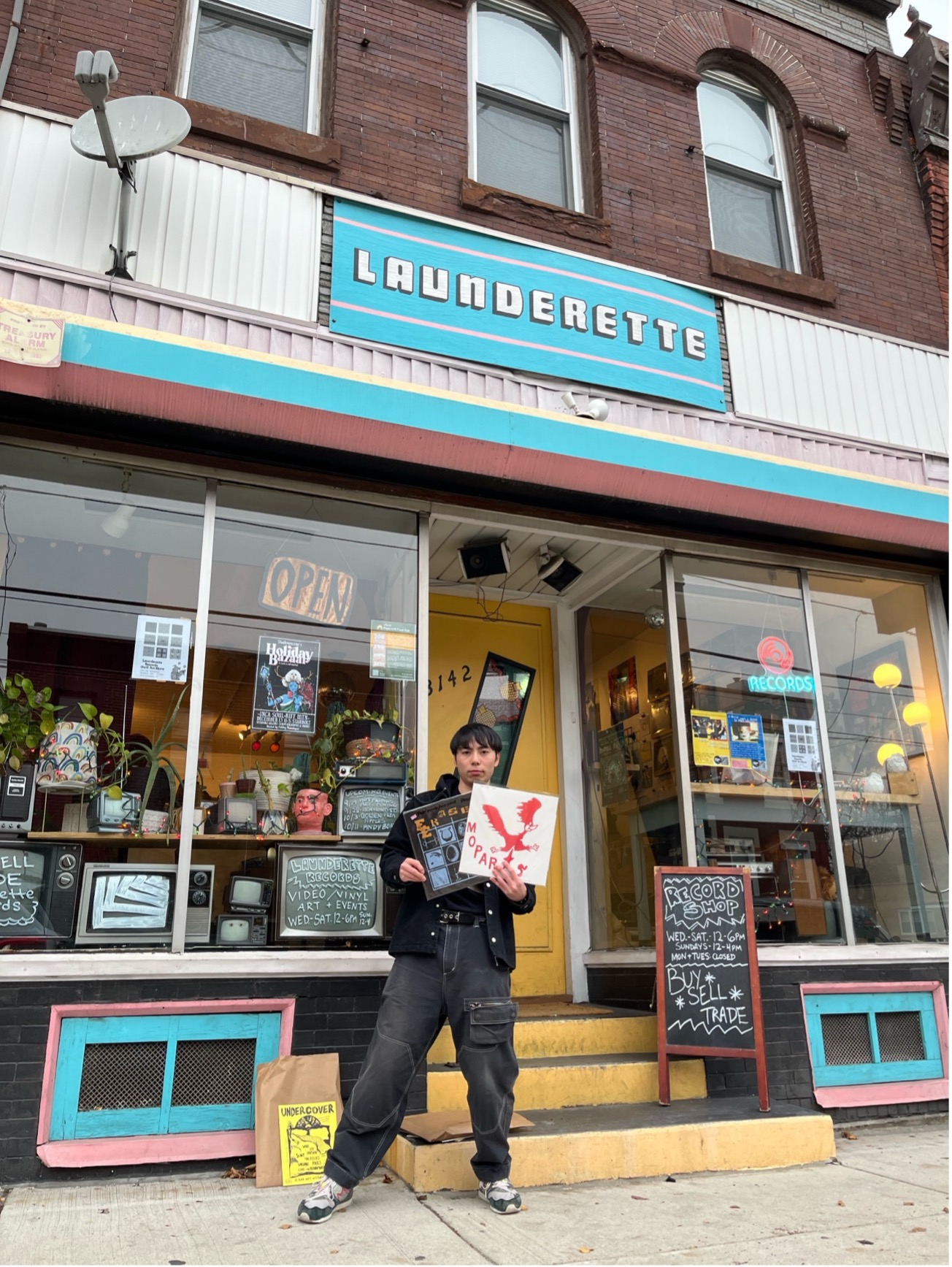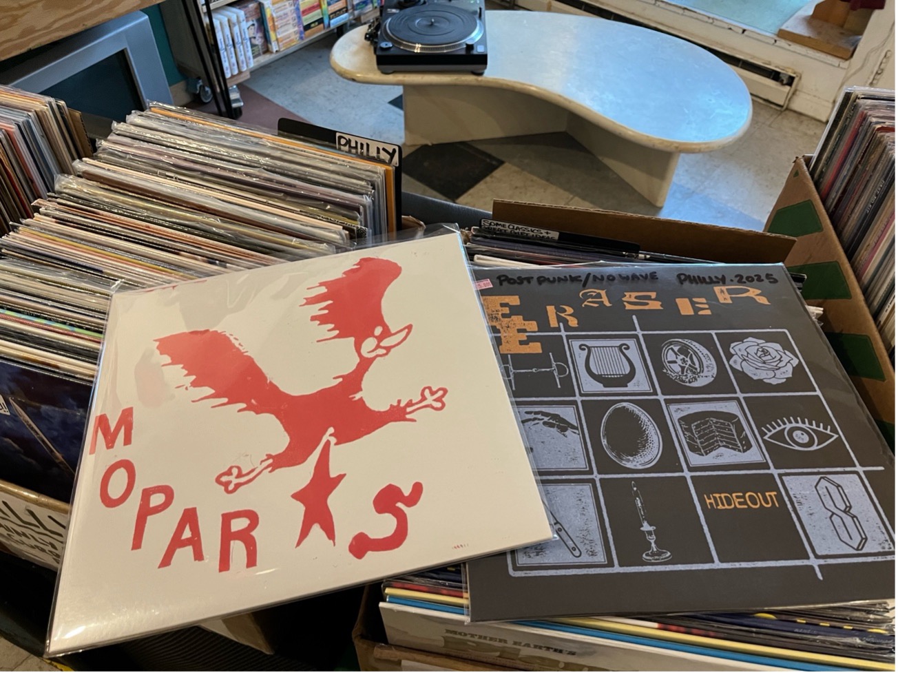 そして目的地のレコ屋LAUNDERETTEに到着。無事に今1番欲しかったレコード、Mopar StarsというPhillyのパンク、インディーバンドの音源を発見。店主とも慣れない英語で会話をし、教えてくれた地元のアンダーグラウンドなポストパンクバンドの音源もついでに購入。多分カッコいい。何故ならジャケが良いからだ。