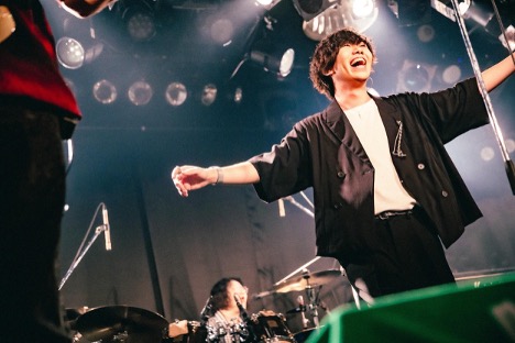 めくるめく激しいメロディーの応酬。ストーリー性のある楽曲を吉國唯(Vo.Gt)が時に強く、時に切なく歌い上げる。その合わさりから生まれる鮮烈な音圧は、初関西でも関係なくフロアを熱狂に包み込む。そこに全力で応えるフロアを見て本人達も楽しくなりすぎたらしく、攻撃的なキラーチューン『DAYBREAK IT』も、今回すごく多幸感があるように感じたし、シンガロングのある『青に酔う』となればもうそれはカンスト。待ちわびた心を互いに震わせ続け、命を輝き散らした30分だった。