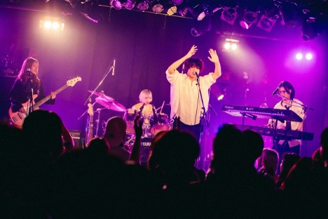 まだ結成して1年未満の超新星が鳴らしたのは、聴いたらすぐにそれと分かる”FANTSY POP”。鮮やかな照明に合う多彩な楽曲と、べこうき(Vo)の指先までしっかり力を込めたステージングで、次第にハンズアップする人やクラップする人が増えていく。