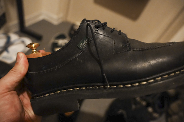 パラブーツはメイドイン・フランス。年々関税で日本での価格が高騰し続けている。なんとお値段10万弱。(そこそこのブランド革靴ならまあ安い方だったりするが)