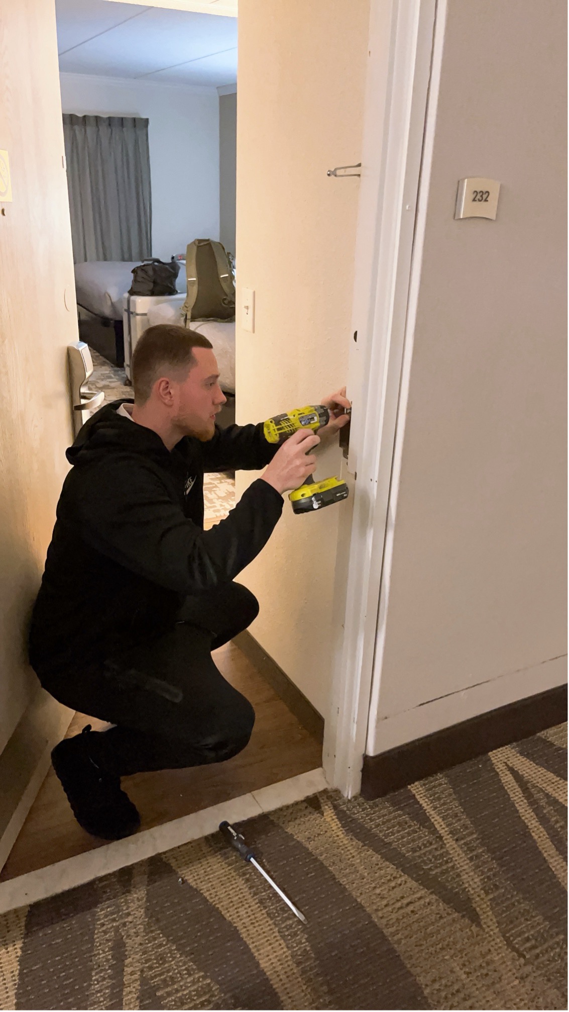 部屋の鍵が壊れていてロック出来なかったので直してもらうことに。あの匂いがただよう兄ちゃんが頑張ってくれたが結局直らず部屋変更。