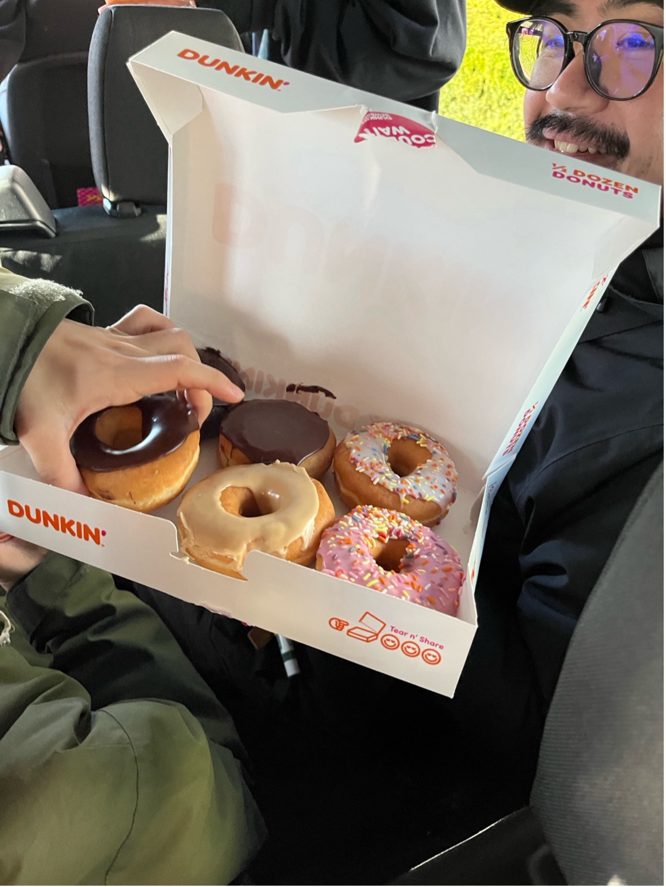ANORAK!、Yawners、えんたつさん、Jakeの計10人でバンに乗り込みツアー初日のシカゴへと出発。バンに乗って早々アメリカでは何処にでもあるでお馴染みダンキンドーナツを皆んなで食べた。おれは朝食に食べたパンがまだ腹にいることもあり、たろうちゃんが食べてたピンクのドーナツをひと口貰ってギブアップ。甘い。甘すぎる。
