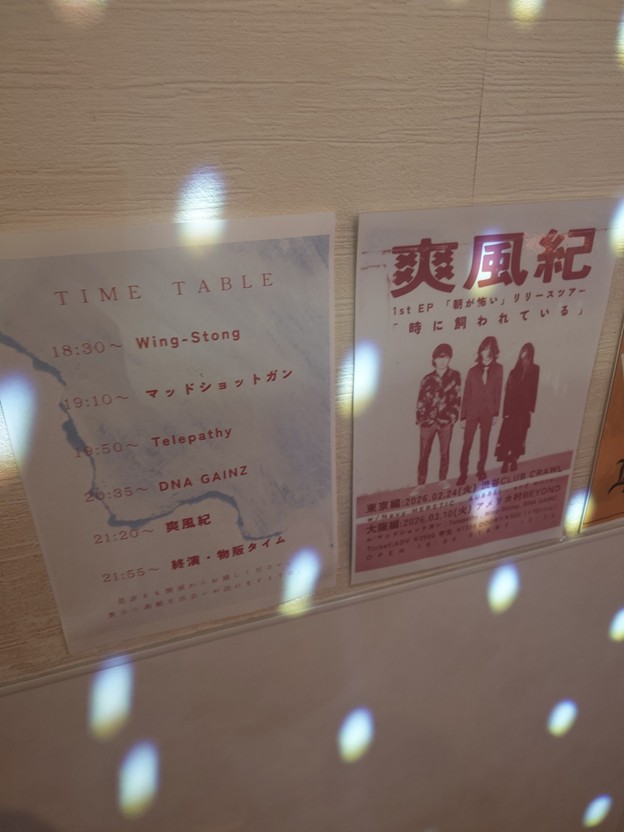 硬派なロックンロールパーティーを見せてくれたWing-Stong、衝動性の中にもちゃんと地に足ついたライブ力の高さやアイデアを示したマッドショットガン、淡々にも激しくあらゆる情景に鳴る音楽を届けたTelepathy、そして複雑にも過不足のないスリーピースの音でしっかり没入させて逃げ場のない状態を作り、そのまま全方向から刺してくるクリエイティブなライブをした爽風紀と、しっかり個性をクリティカルヒットさせてきたと思います。