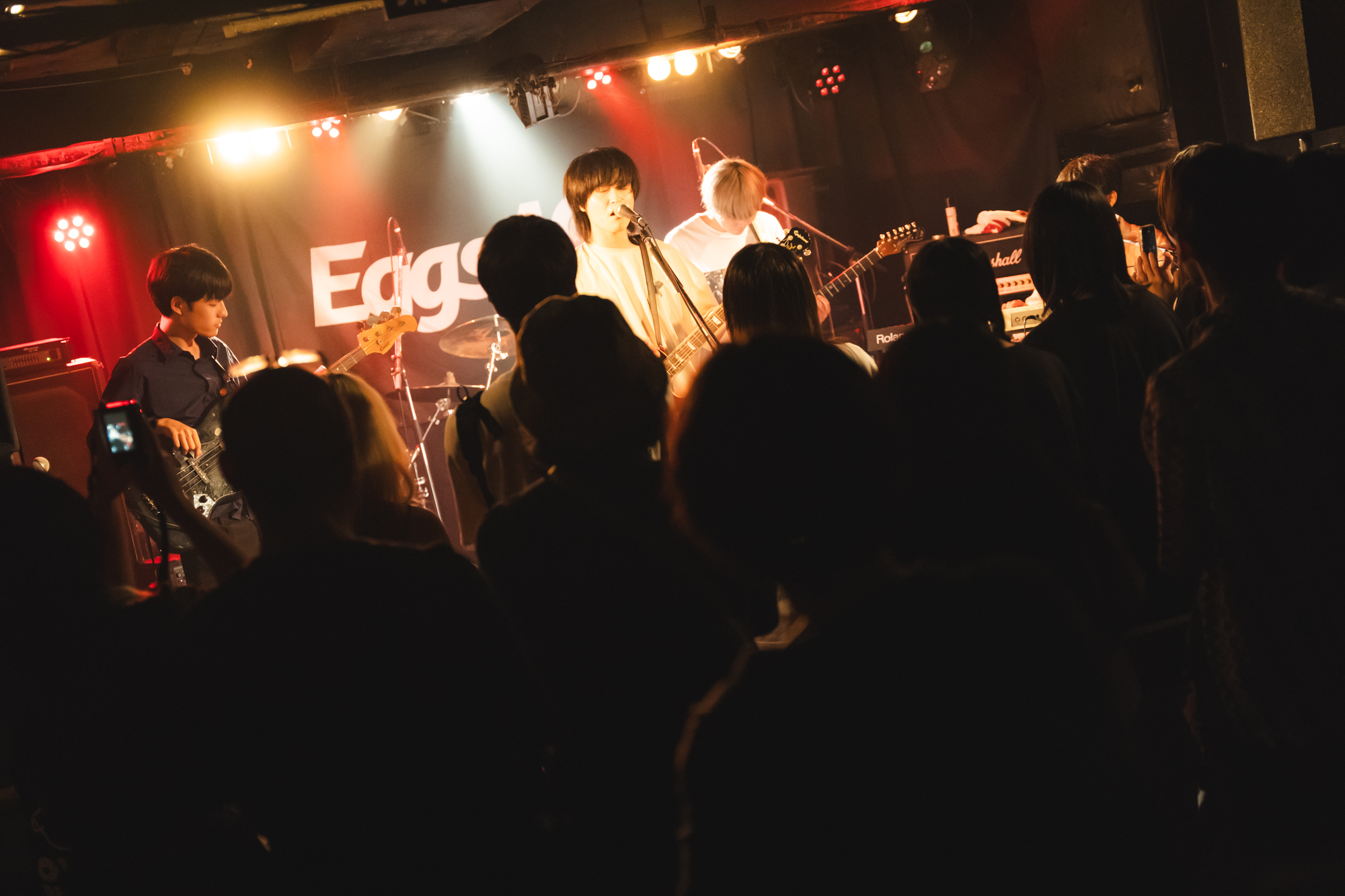 2025年に結成された東京発の3ピースロックバンド、ミナトロジカ。結成時はNEON SIGNのバンド名で活動していたが、2025年8月8日にミナトロジカに改名。この日はミナトロジカとして初のライブとなった。サポートのギターとベースとともに5人でステージに登場したミナトロジカ。1曲目は哀愁と力強さに満ちたボーカルで始まる「5番線」。ベースとドラムに加え、ツインギターとキーボードが重なるサウンドは壮大だ。「もともとNEON SIGNという名前で活動していて、今回ミナトロジカとして初出演。緊張していて楽屋で吐きそうだったんですけど、元気になりましたんで今日は頑張ります」と、遼(Vo./Gt.)がやや緊張した面持ちで挨拶をすると、フロアから拍手が贈られる。煌めく鍵盤の音色、タイトでキレのあるドラムが響く「またね。」の演奏を終えると、まさかのトラブルが勃発。リードギターであるサポートのギターの弦が切れてしまったのだ。共演者からギターを借りるためサポートが一旦退場すると、遼が焦りながらもMCで場をつなぐ。「『EggsレコメンライブVol.25』に呼んでくれたEggsの斉藤さん、ありがとうございます。NEON SIGNも含めて(今日が)2回目のライブ。こうやっていつも聞いてくれている人達の顔を見ながら歌えるのはいいですね」と喜びと感謝を述べた。ラストは後悔と未練を残した恋心を歌う「蒼い春」。トラブルを乗り越え、オーディエンスとともに初ライブを完走したミナトロジカの表情には、自信と達成感に満ちた笑顔がこぼれていた。