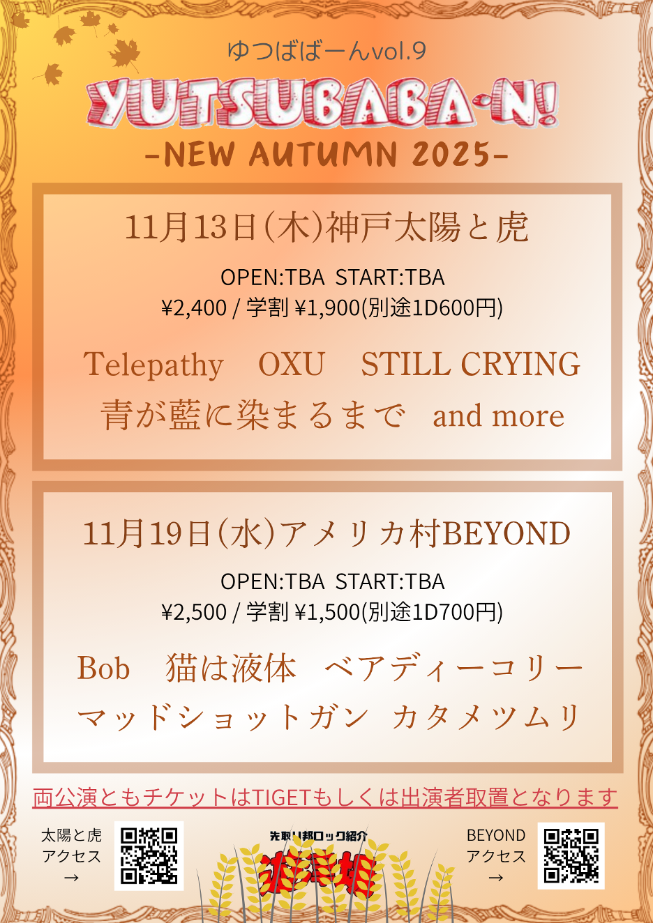例えば11/13の神戸のライブとか〜。11/19の心斎橋でのライブとか〜。