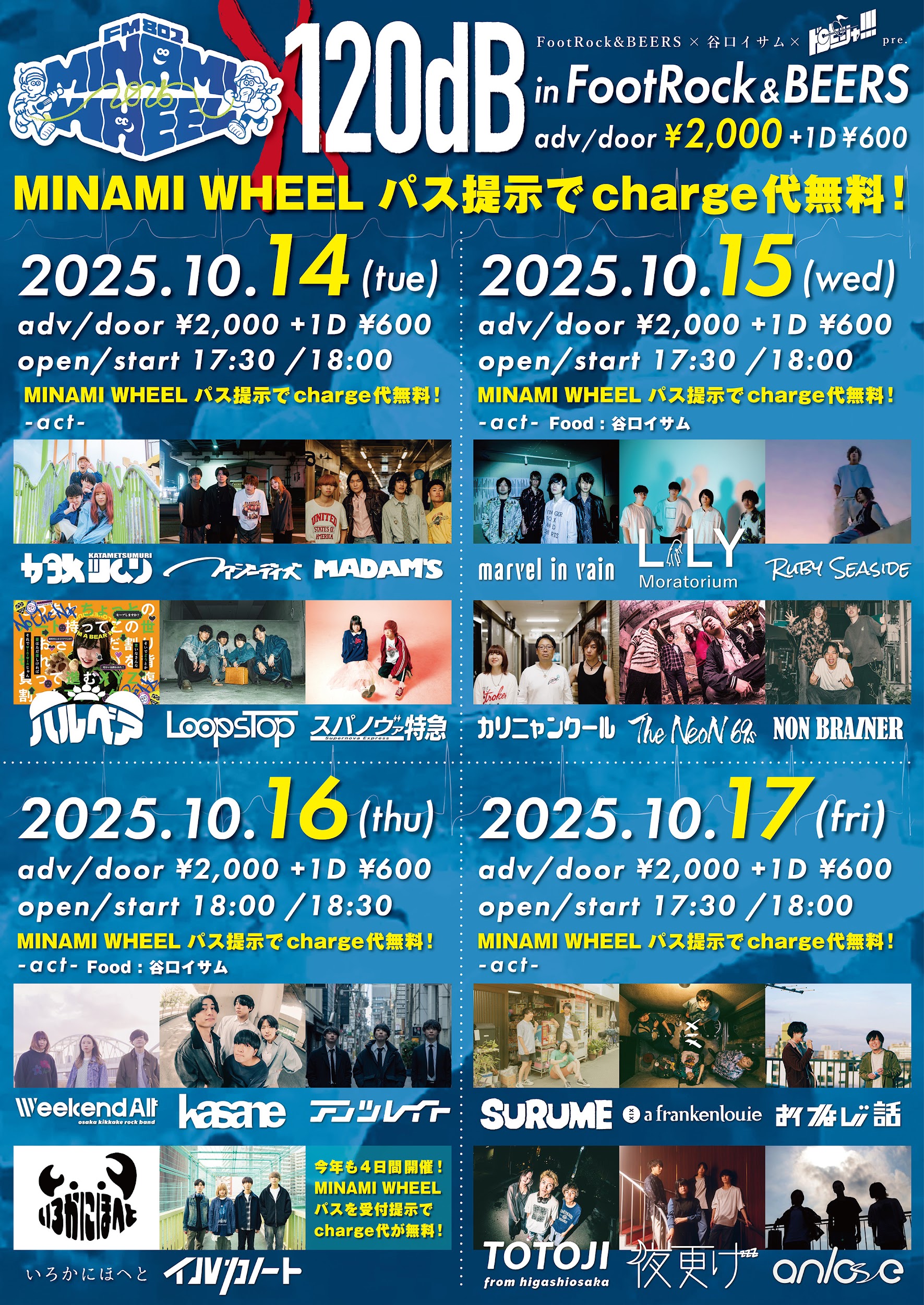 そして昨年10月は特別編としてMINAMI WHEELのアフターイベントとして毎年FootRock & BEERS恒例となってきている”120db”とコラボ開催しました。
