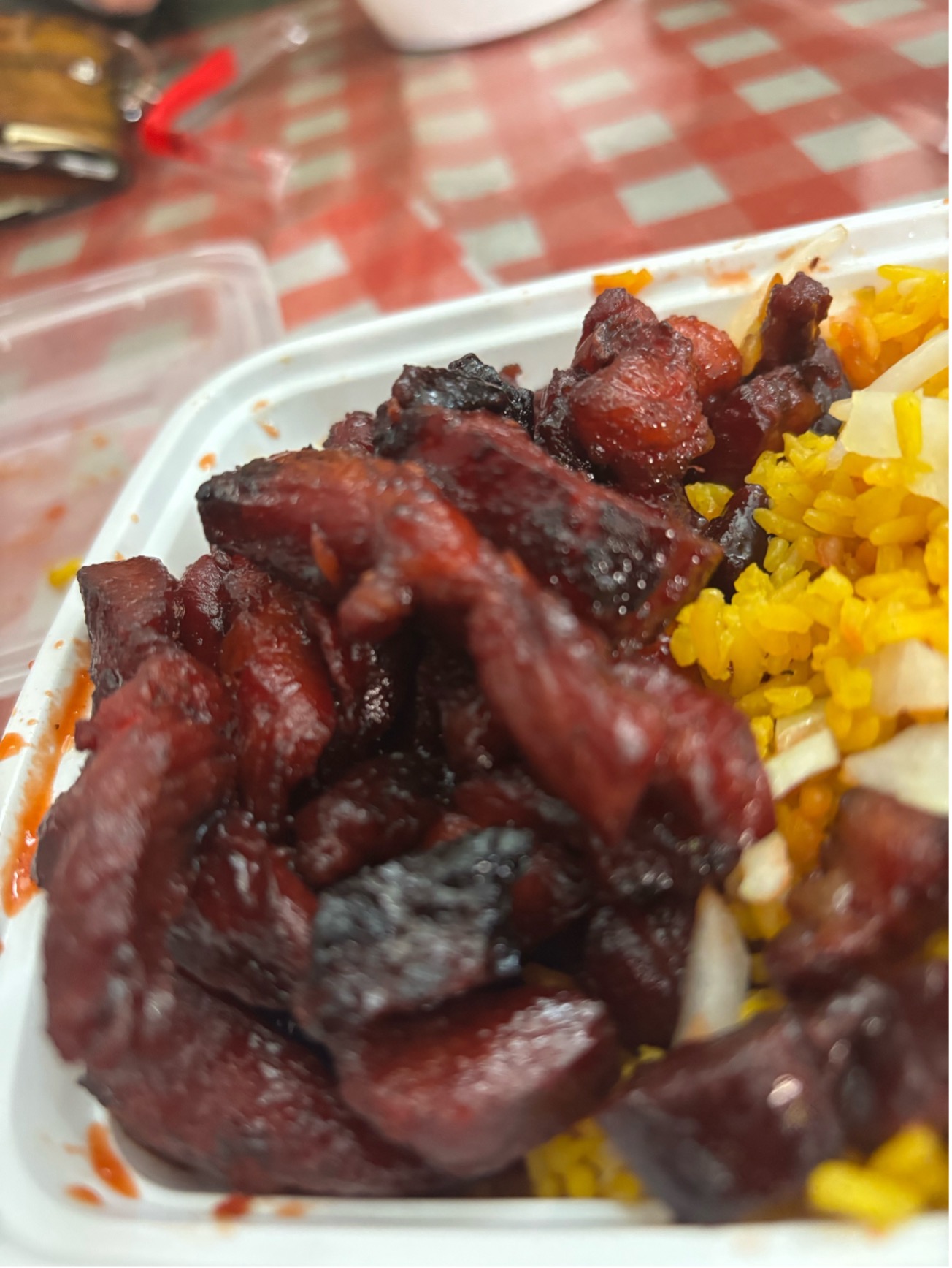 いろんな意味での期待を抱き店内に入る。4人掛けのテーブルが2つ程しか無く、持ち帰りがメインのような店作り。値段はかなり優しめで普通に美味しそうだ。おれは牛肉とブロッコリーの炒め物&白米のコンボを注文。シカゴで食べたパンダエクスプレスと同じラインナップで勝負に出た。当たりだった。柔らかな牛肉が噛み応えのあるブロッコリーとのハーモニーを奏で、そこにパサパサの白米が歌舞伎町のキャッチのごとく絡み合う。まさにNEW CITY。たろうちゃんはローメン(中国の焼そば的な)、トモホは手羽先&フライドライス、加藤はフライドライスのみ。加藤の強気の選択はのちに後悔する事になる。