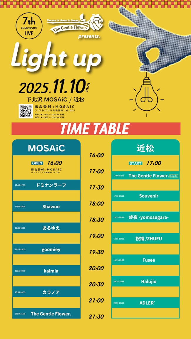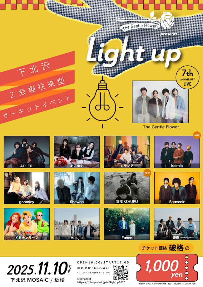 群馬県沼田市発ロックバンドThe Gentle Flower.が2025年11月10日(月)に東京・下北沢MOSAiCと近松で開催する2会場往来型サーキットイベントThe Gentle Flower. pre. 「Light up」の最終出演アーティストとタイムテーブルを発表した。