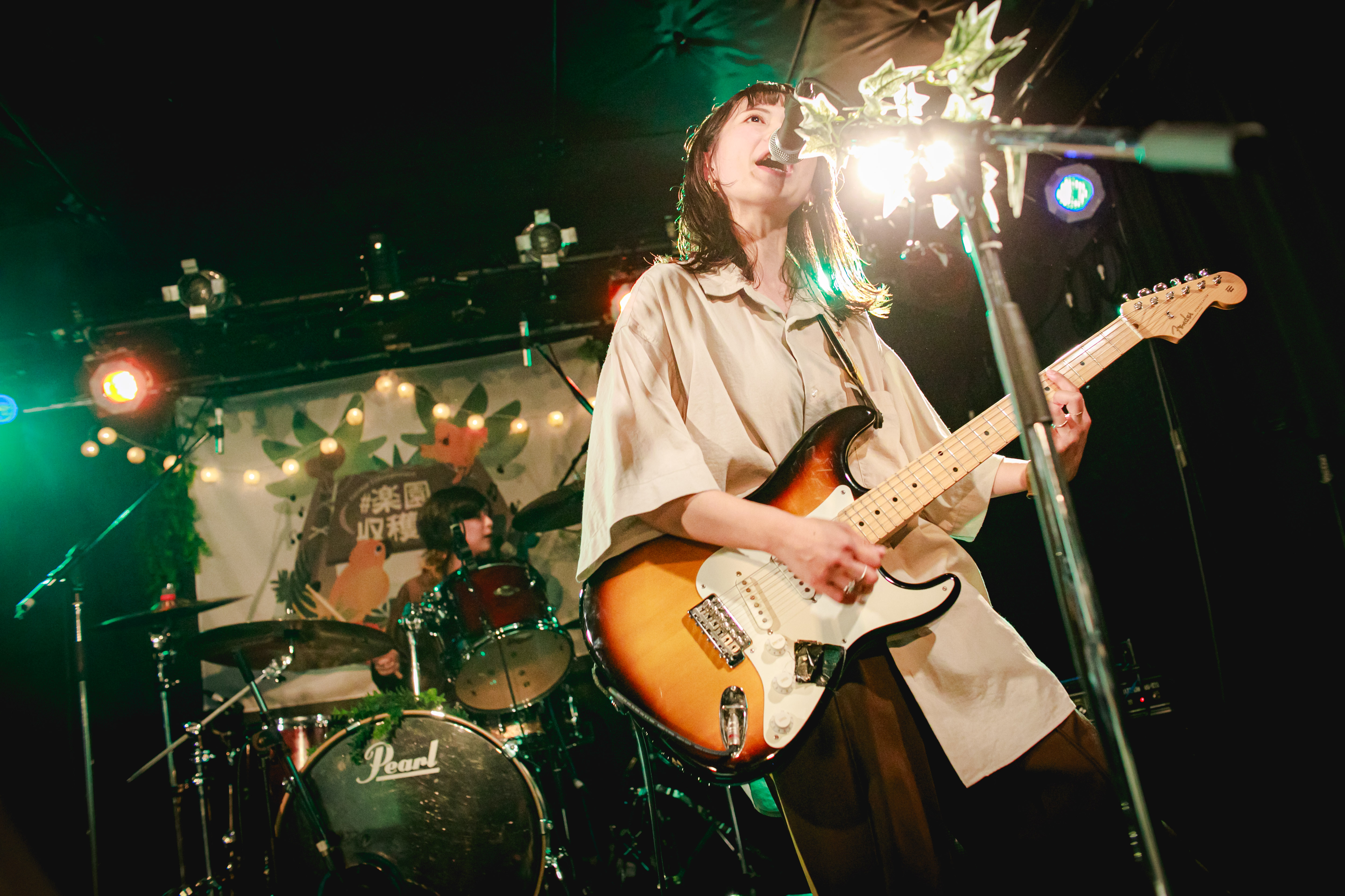 今、全国各地に出現しているガールズ・バンドが一堂に会するイベント『#楽園収穫祭』。2024年夏に東京・下北沢で初開催され、2025年3月には東京と名古屋で『雛祭り2Days』が開催されてきたなか、このたび仙台のリリカルの結成2周年記念とコラボレーションし、東北で初開催された。その名も『#楽園収穫祭 杜ノ歌ゲ〜リリカル2周年パーティー presented by Eggs 10th Anniversary』。10月19日、会場となった仙台FLYING SONのステージやフロアは杜の楽園パーティーのごとく蔦やライトで細かく装飾され、開演前から期待値が高まっていた。