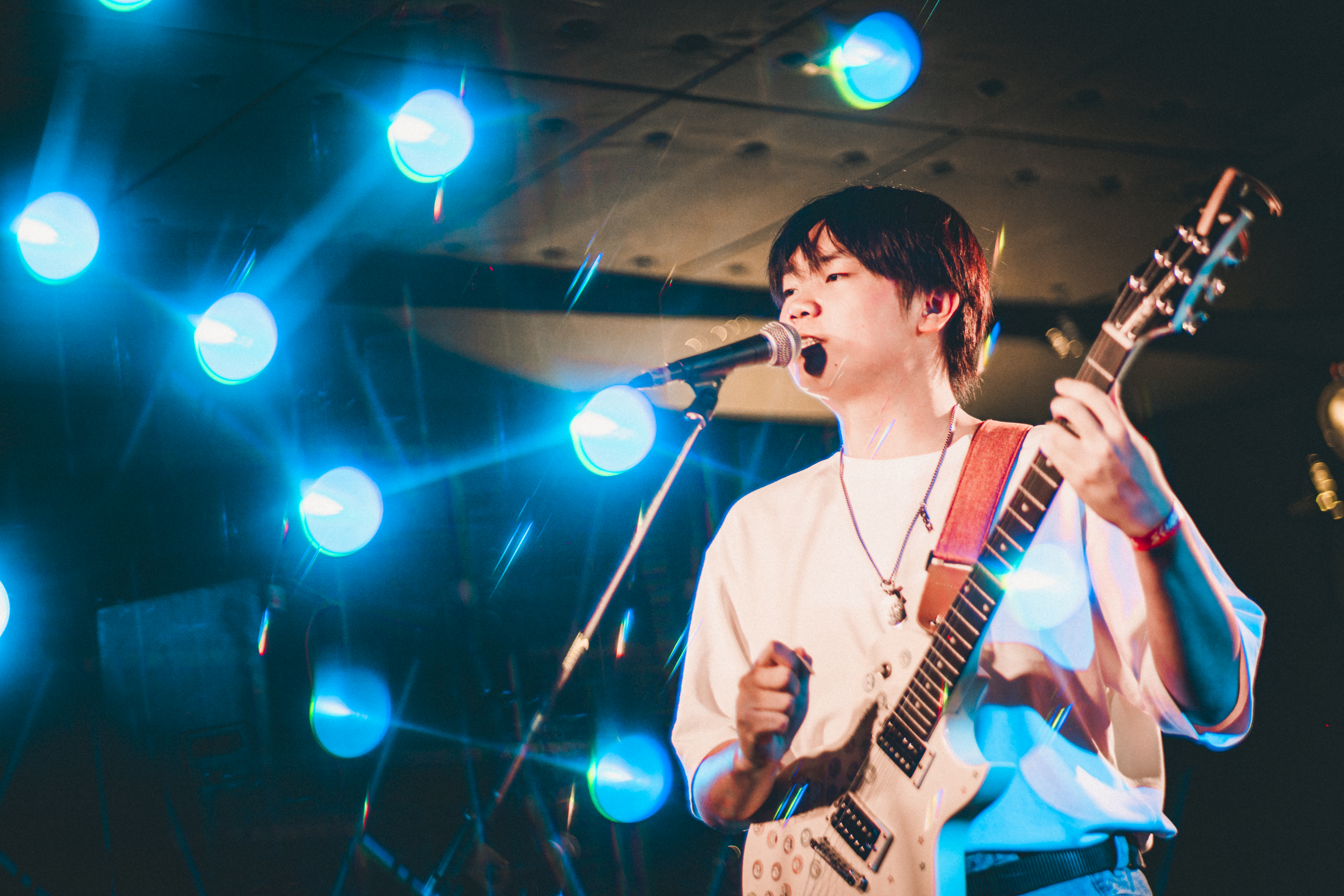 最後にステージに上がったのはNew Love New Light。ギター&ボーカル、ギター、ベース、ドラムの4ピース。メンバー全員、早稲田大学に在籍中のバンドだ。マージービートなどのルーツロックを軸にして、ポップな曲を展開する。そんな中に、80年代初期のニューウェイヴを思わせるような、ちょっとひねくれたギターフレーズを取り入れるなど、音楽への好奇心や、メンバーそれぞれのルーツを具現化しようとする、頼もしいスピリッツがある。最初の曲の間奏では、ダブのアプローチをするメインギター、同時にスカのリズムを刻むボーカルのギターなど、音楽ルーツもディグっている最中であることも伺えた。2曲目では、バンドサウンドの音数の抜き差しでアレンジの緩急を作り出し、アウトロをアンビエントな音像につなげていく。ベースがリズムを刻み始めると同時に次の曲へ。見事なつなぎをみせた。また、2名のギターが向き合って弾くパフォーマンスも目を引いた。曲を作りライブをするだけでなく、様々な曲を聴き、多くのライブを観ることもバンドが成長するには欠かせないファクターだが、そこを着実に布石にしていることを感じさせるライブだった。伸びしろしかないバンドだと思った。