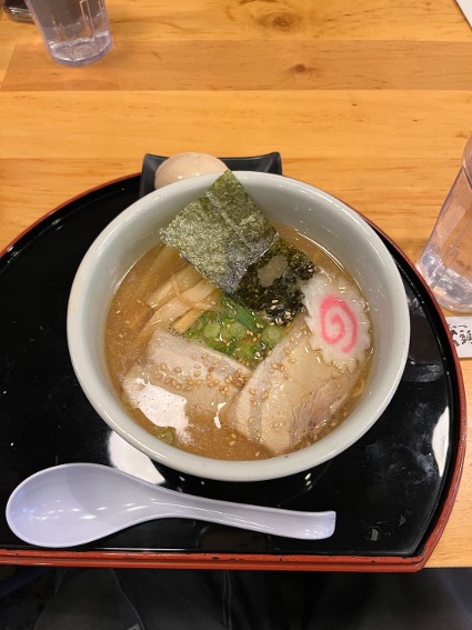 山頭火の話に戻ろう。メニューには日本語も記載されており、そんな日本と変わらなそう。ただ、メインで推しているのがラーメン、餃子、から揚げ4つのセット。かなりのボリュームだ。流石アメリカ。MacsealのRyan以外のメンバーはこのセットを注文していた。私達はラーメン単品をそれぞれ注文。おれはハズレなさそうな豚骨醤油をチョイスした。待っている間は日本食の話などをして良い時間が流れた。やっぱり納豆は苦手みたい。そして10分後に着丼。見た目は完全に日本で食べるラーメンだ。まずはプースーをひと口。知ってる味だ。次に麺を啜る。知ってる味だ。思わず白米を追加注文。横浜育ち家系王道セットが完了した。硬ってえ米を期待していたがベチョベチョだったのが残念。まるでもち米のよう。量はアメリカンサイズを期待していたがかなり日本人向けの普通サイズ。アメリカ人には確かにセットじゃないと足りない気がした。Macsealの皆んなは箸を器用に使いこなし食べていた。