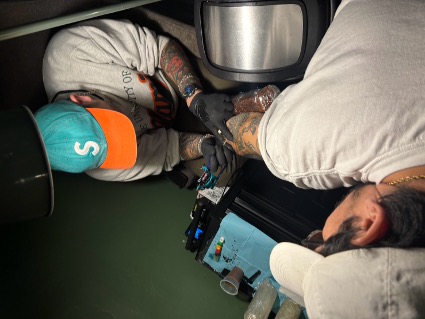 グリーンルームに戻ると出演バンドの名前が描かれたクッキーが置いてあり、出演者なら投げ銭価格で彫れるタトゥーブースも設置されていた。完全にアメリカンパーティースタイル。あとは後悔しないくらい楽しむだけだ。