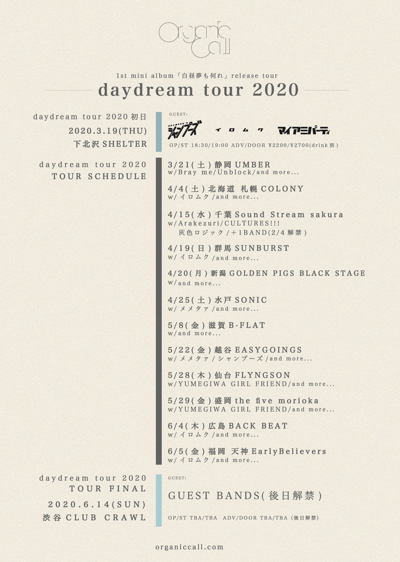 - 6月14日(日)渋谷CLUB CRAWL(TOUR FINAL)